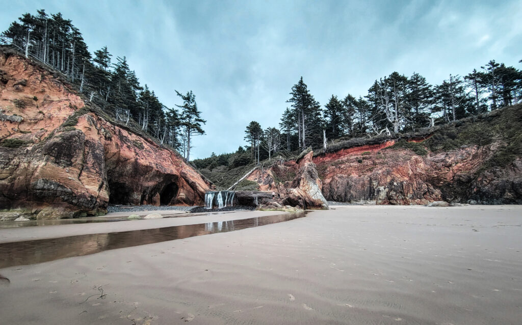 Hug Point many not be as known as the Haystack Rock beach area, but I fell in love with this area. Coming off HWY 101, you will pull into a parking lot with a stair case that gives you access to the beach. I suggest you go here when the tide is low so you can access the hidden beach with the secret waterfalls and countless sea caves.