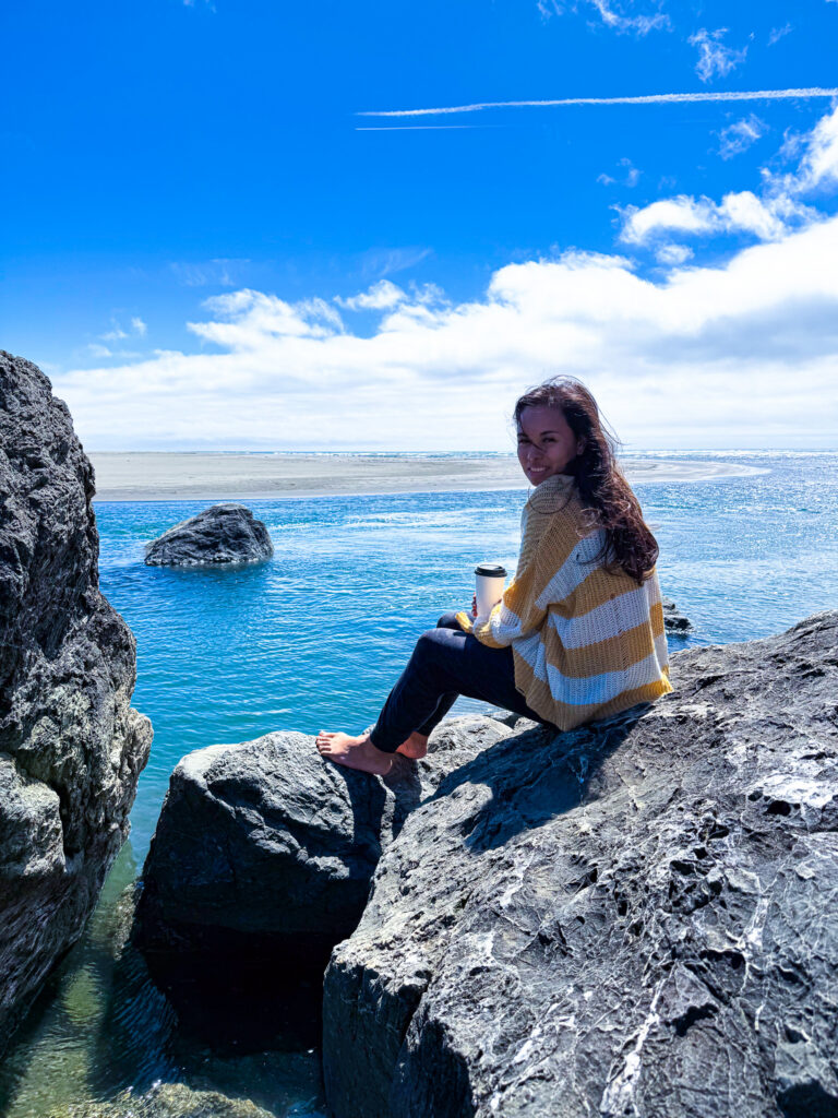 Our next stay was in Smith River, California, which is close to the southern border of Oregon/California, right on the coastline. We are so grateful we booked this as our base camp for many reasons, with one of them being we discovered Kellogg Beach a couple minutes from our Airbnb. Kellogg Beach is a secluded beach near the mouth of Smith River. Kellogg Beach is quiet, rugged and filled with seals. This is a beach that is definitely more for nature viewing than swimming, but it was still stunning. We had it to ourselves, with exception of the seals. The rocks are very interesting, although they are also very slippery!