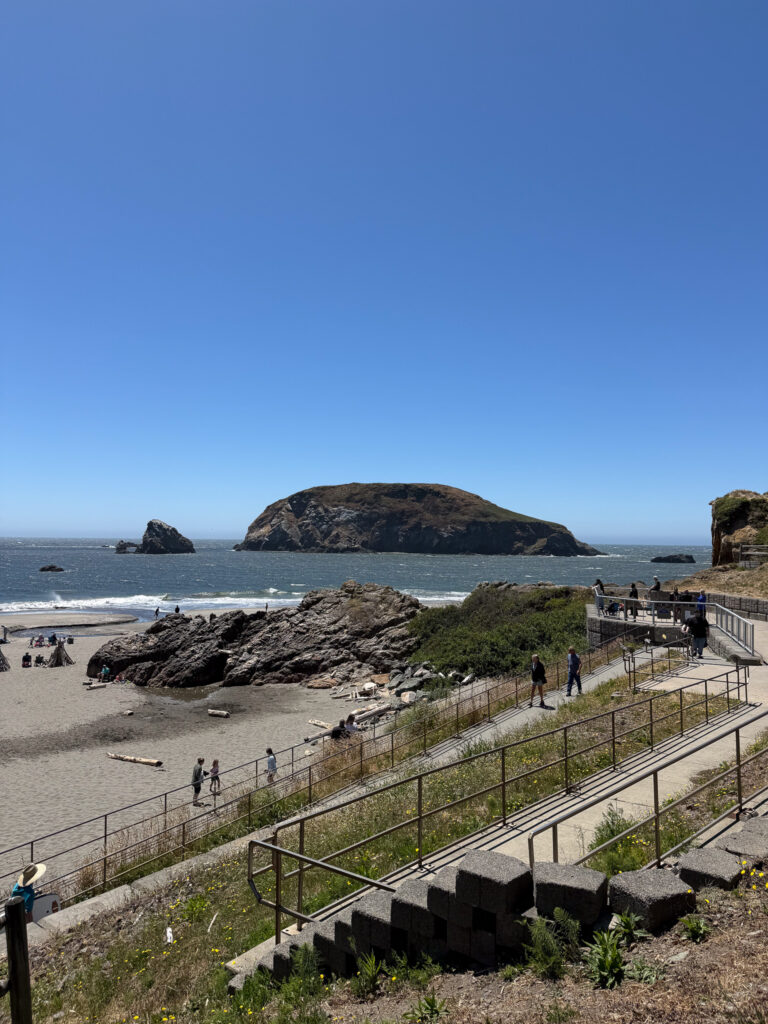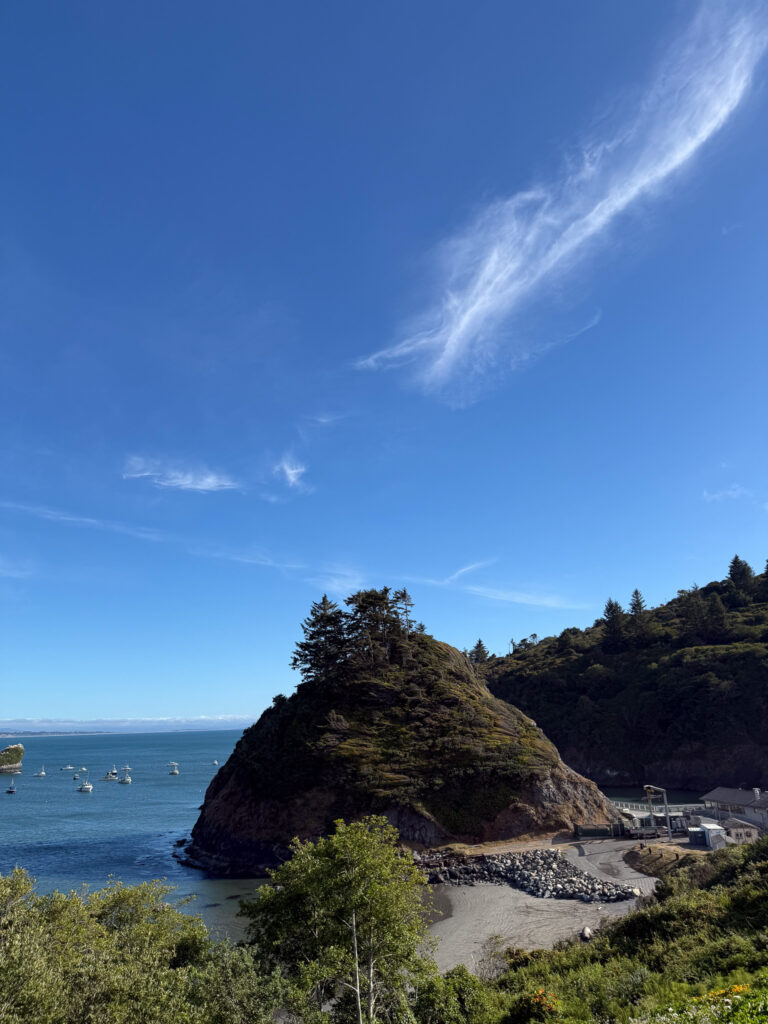 We stopped in what we read is one of the most gorgeous coastal towns in northern California, Trinidad. The rumors were true-there is something magical about the town known as “where the Redwoods meet the sea”. We felt a Mediterranean vibe as we explored Trinidad. If you are a whale watcher-this spot is for you! The beaches are considered the main attraction, such as Moonstone Beach (where the river meets the ocean), Old Home Beach (easy access and artsy driftwood) and College Cove (short hike to a blue, secluded beach). You can also see the light house overlooking the bay, and hike Trinidad Head for whale watching.