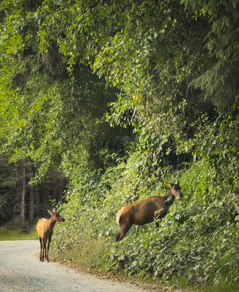 The hike to Fern Canyon is an easy 1 mile loop trail, where you may have to walk through shallow waters at times. It was unreal-we loved being surrounded by 50 foot moss canyons and waterfalls. We did see a lot of wildlife- coyotes and elk. It was neat to see them, but also a good reminder to be careful.