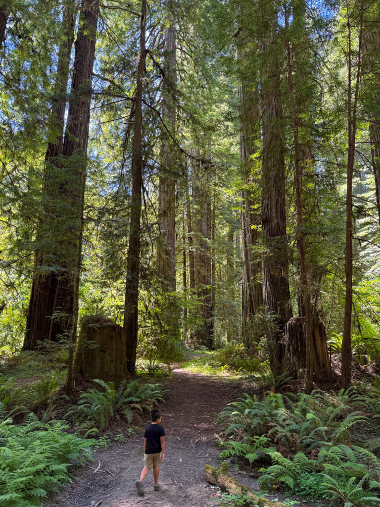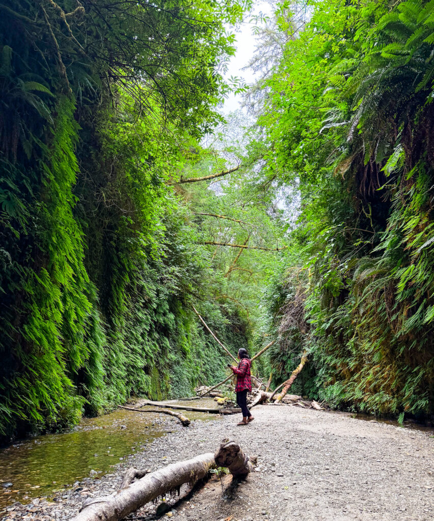 This one is for my Jurassic Park fans. North of Trinidad are multiple adventures in the Redwoods. We decided to visit Fern Canyon, where famous scenes from Jurassic Park were filmed. To start this adventure, find your way to Prairie Creek State Park near Orick, California. If you visit from May 15- September15, you will need to make a reservation online prior to visiting. You will drive down Davidson Road, which is super dusty, bumpy and goes through the forest for 7.5 miles. We parked in a lot that had a trail to Gold Bluffs Beach and to Fern Canyon.