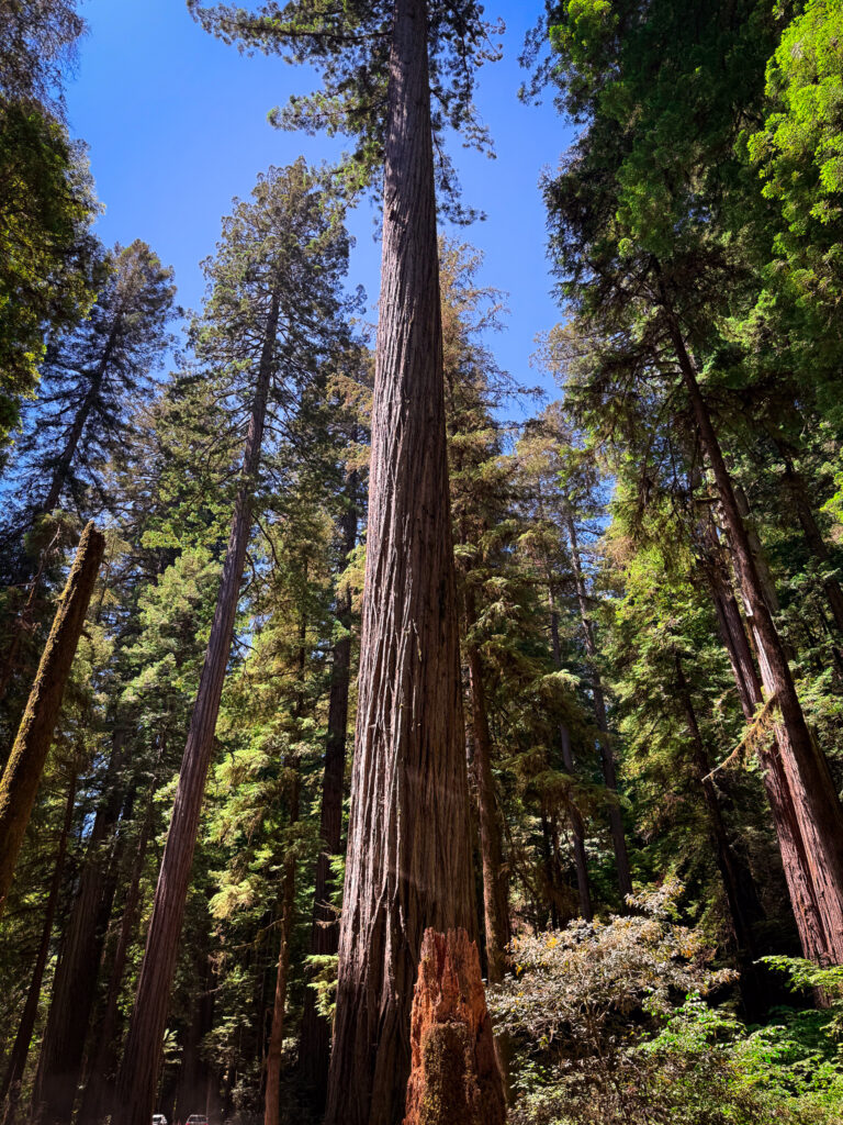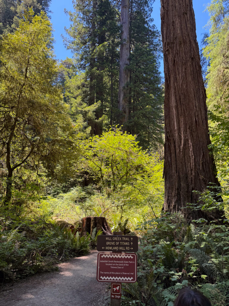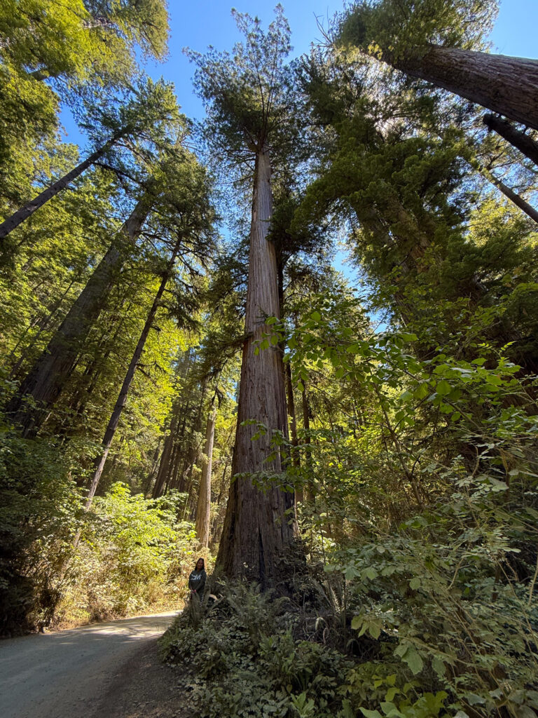 One of the best places to see the oldest trees on the planet, the Redwoods, is in Jedediah Smith Redwoods State Park. This park was only a few minutes from Smith River, CA as you head north to the Oregon border. First, we drove through Howland Hill Road, which is about 1.5-2 hours depending on the crowds, and if you stop to walk. It felt like driving through an ancient forest with trees taller than skyscrapers. The Redwoods can grow to be over 300 feet tall, and live for thousands of years.