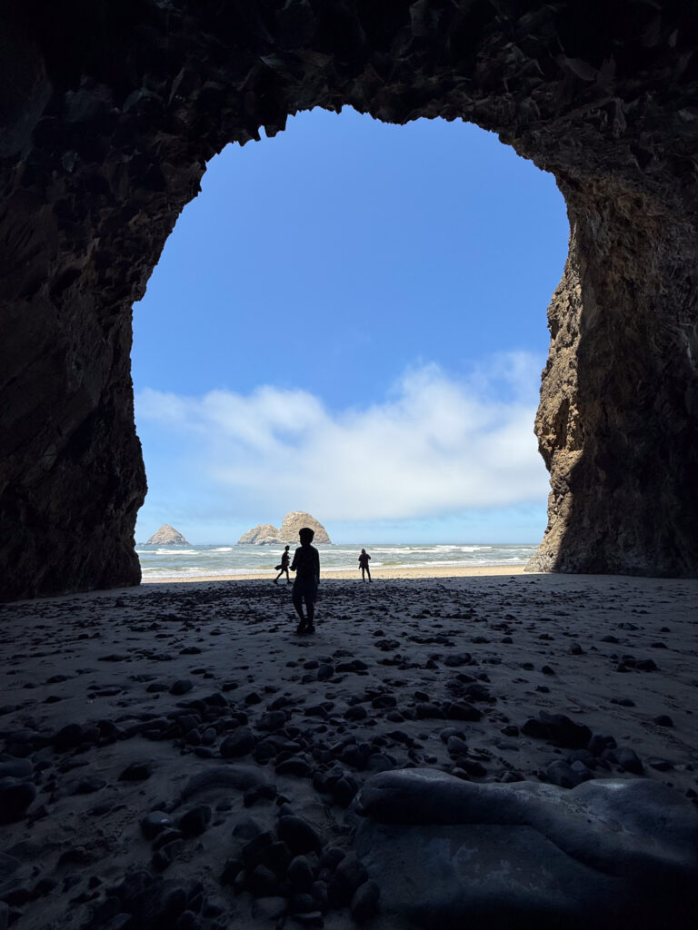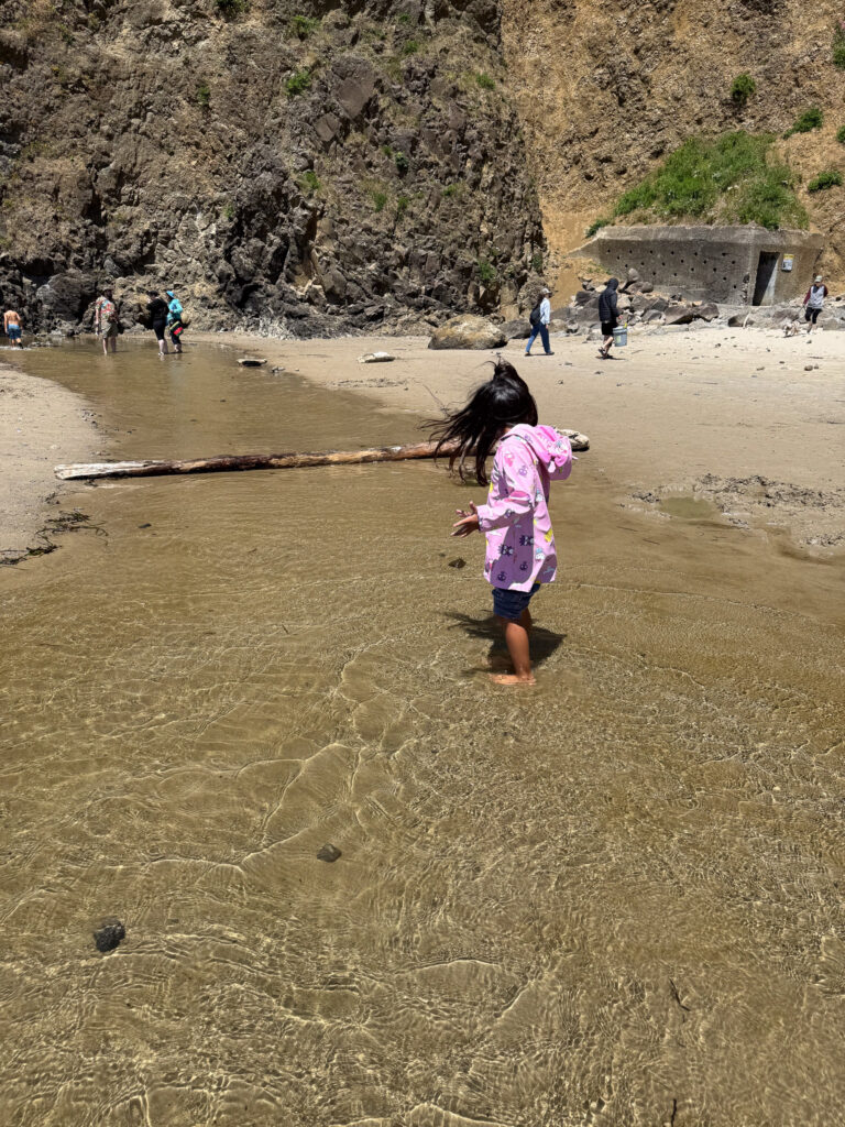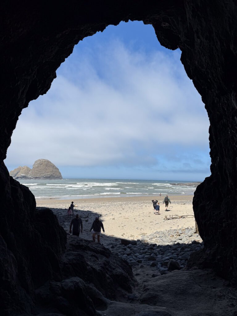 We walked at Oceanside Beach & discovered the secret tunnel, which you can access to get to the other side of the beach if the tide is high. The tide was low for us this morning, so we were able to walk there on the beach instead. We had so much fun discovering starfish, crabs and sand dollars in the tidal pools. Oceanside is also home to the Three Arch Rocks-a wonderful view with the sunset! Please note that parking can be difficult on weekends especially.